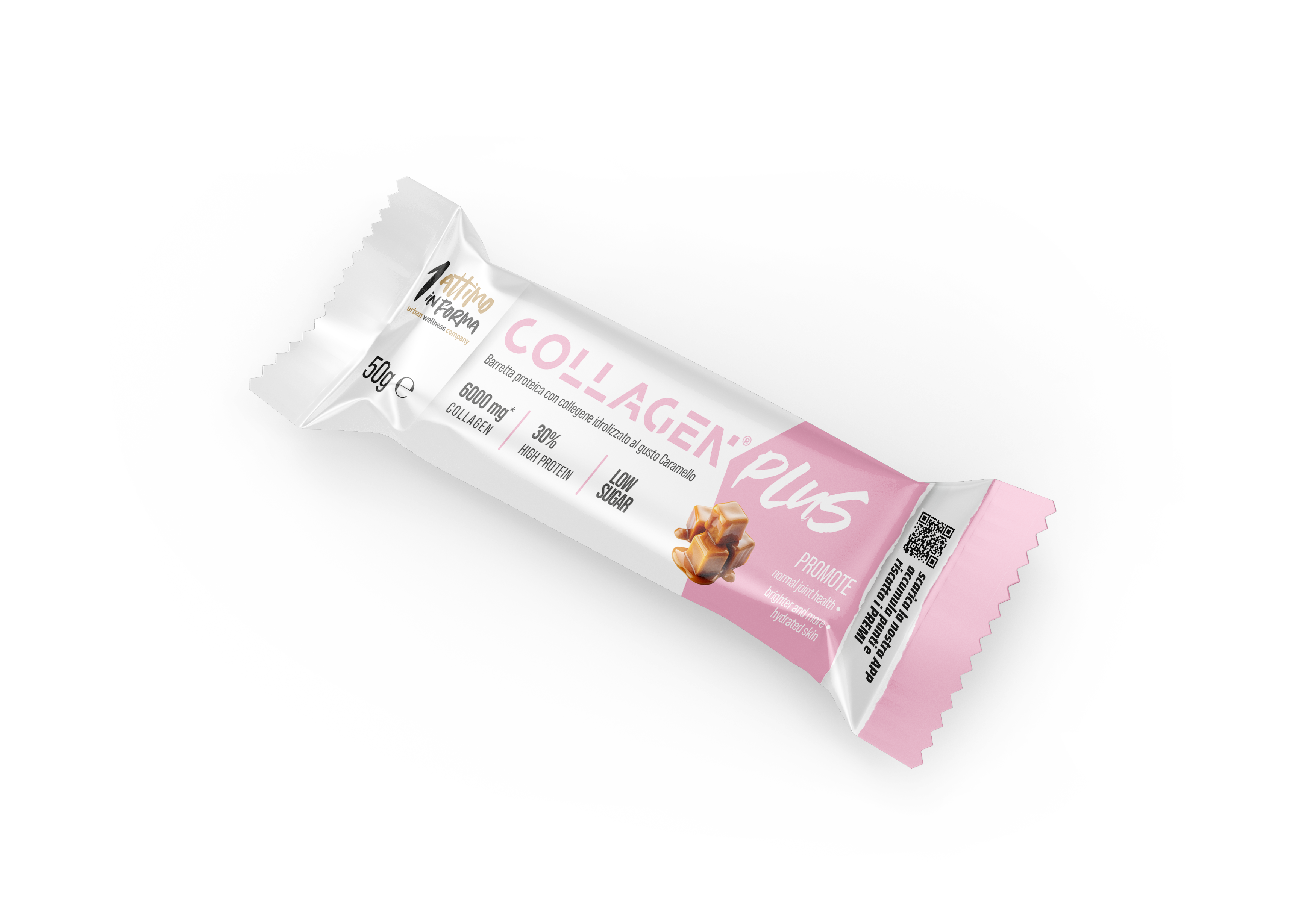 Descrizione lunga: La Collagen Plus al Caramello è la barretta proteica perfetta per chi cerca un equilibrio tra gusto e benessere. Con ben 6000 mg di collagene e il 30% di proteine, supporta la tonicità di pelle, unghie e capelli, contribuendo al tempo stesso al mantenimento della massa muscolare.