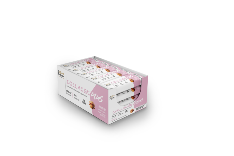 Barretta proteica al gusto caramello con 6000 mg di collagene. 30% di proteine, basso contenuto di zuccheri e una consistenza cremosa per uno snack sano e goloso.
